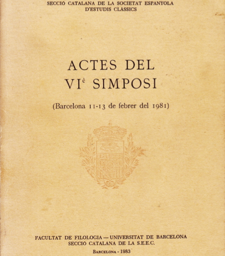 Actes del VIè simposi Secció catalana de la SEEC, Barcelona, 1983. Actes del VIè Simposi de la Secció Catalana de la SEEC. Barcelona, 11-13 de febrer del 1981. Facultat de Filologia - Universitat de Barcelona. Descàrrega (PDF - 19MB - Google Drive)